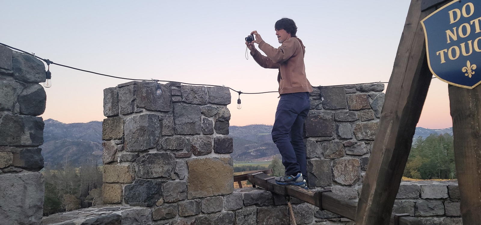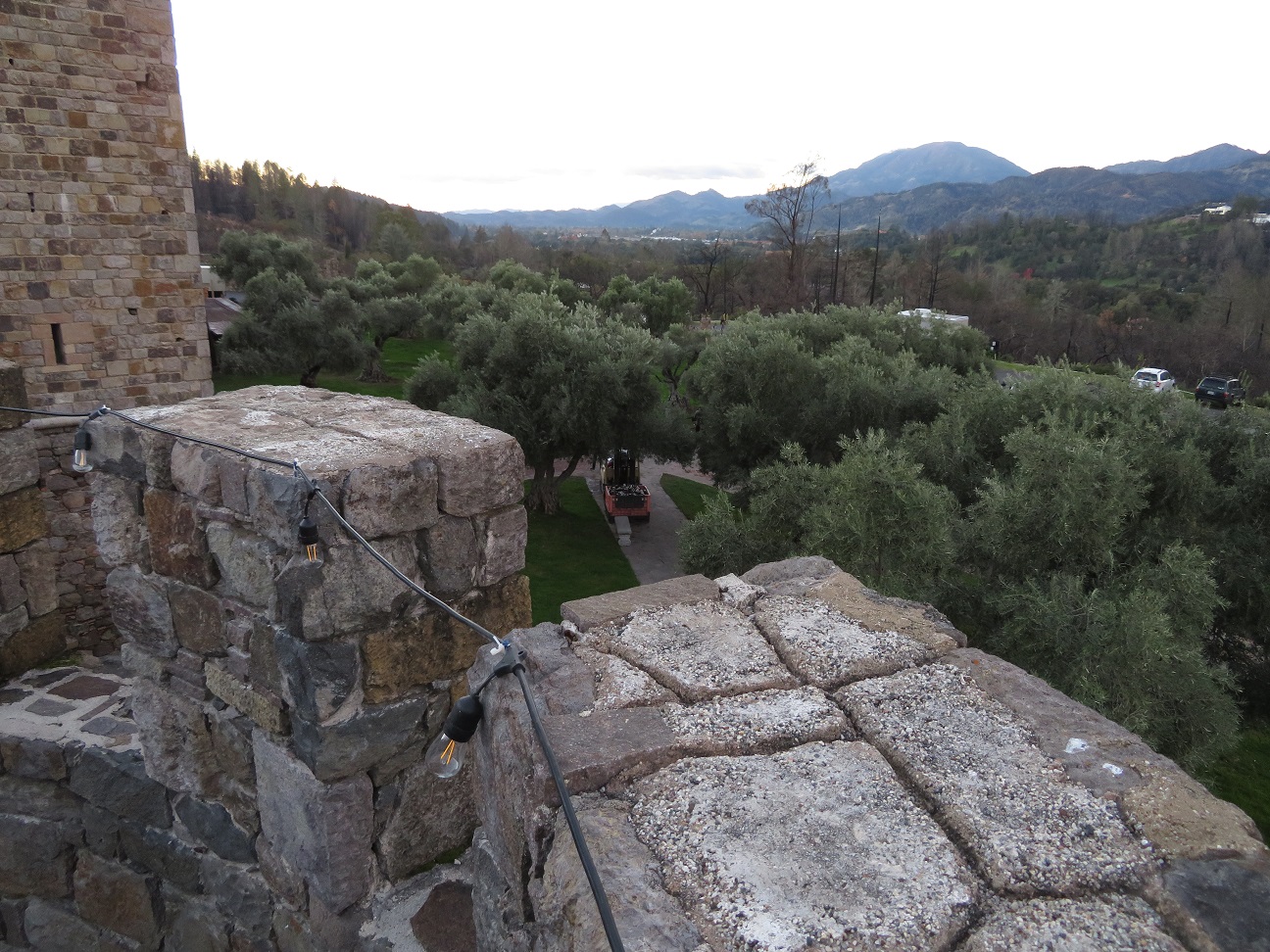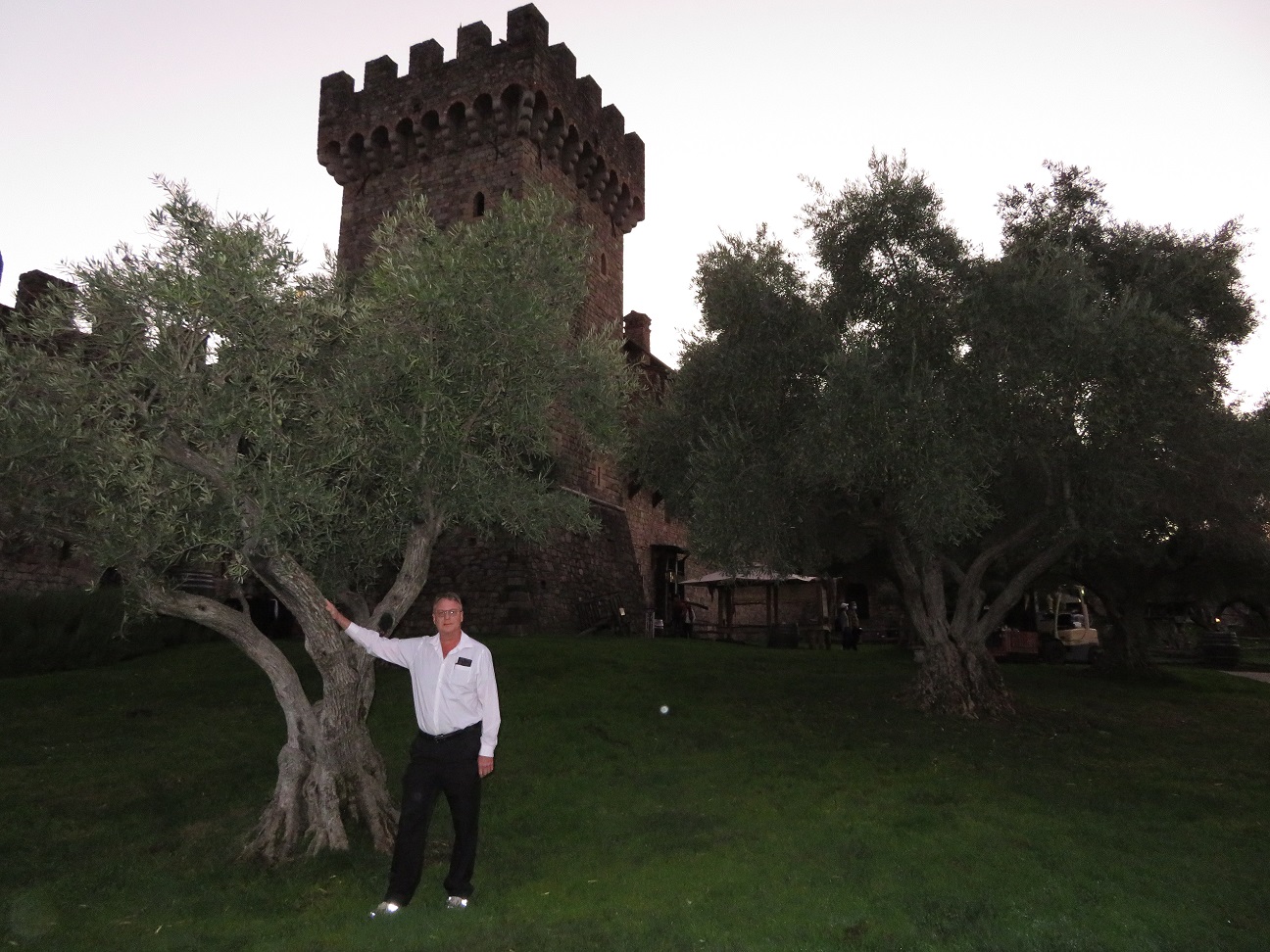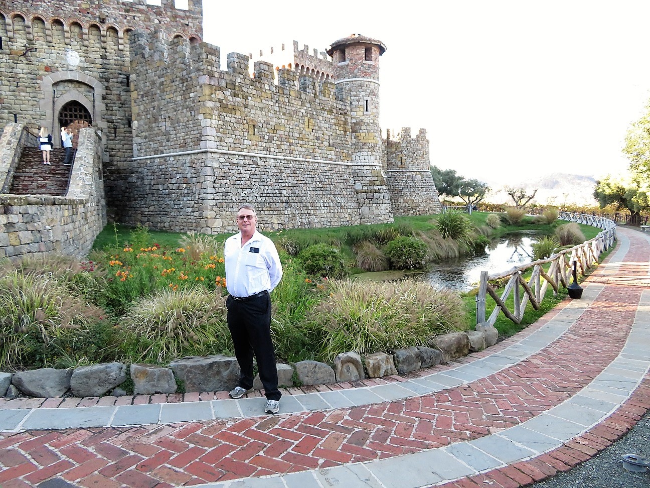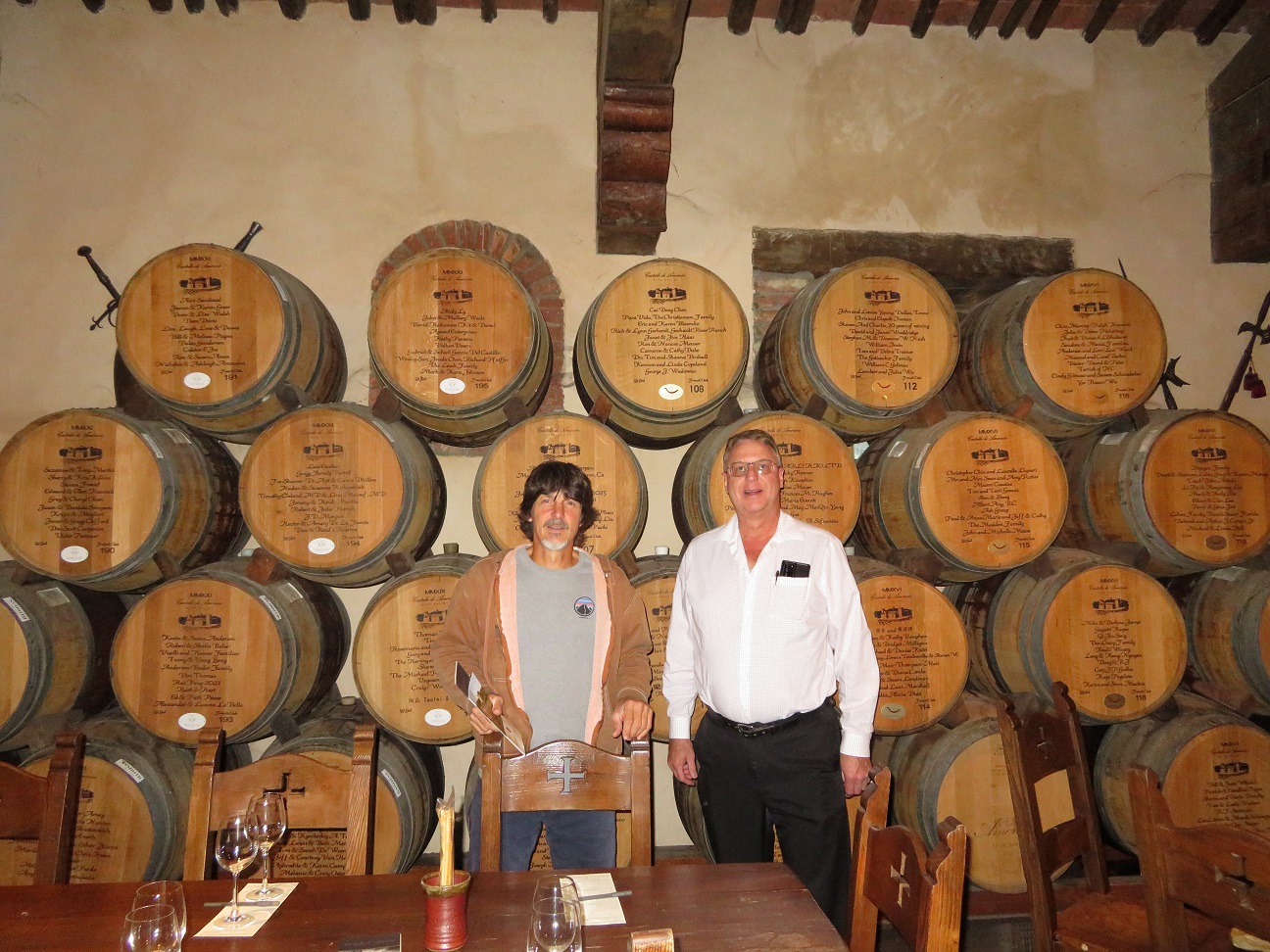 Andy started the day with coffee from the Calistoga Roastery. Then we had breakfast at Cafe Sarafornia (which was really good). After an excellent repast, we toured wineries. We found some excellent wines at Picayune Cellars (which caught our attention because of the name), the Clos Pagese winery, and at the Castello di Amorosa winery. We bought wines from each. Here we are tasting at the Clos Pagese winery (good to the last drop!):