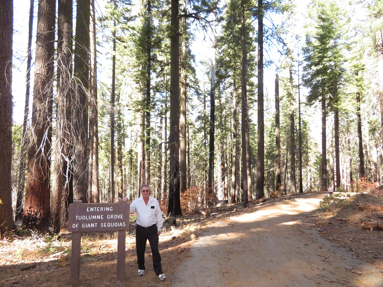 When we got to the trailhead that lead to the Mariposa Grove, it was almost dark. The trail to the grove is 1.9 miles. We decided to try it. I made it about a mile down the trail, then with increasing fatigue and decreasing daylight, I wimped out and returned to the car. Andy did make it to the grove and managed to take these two pictures in failing light: