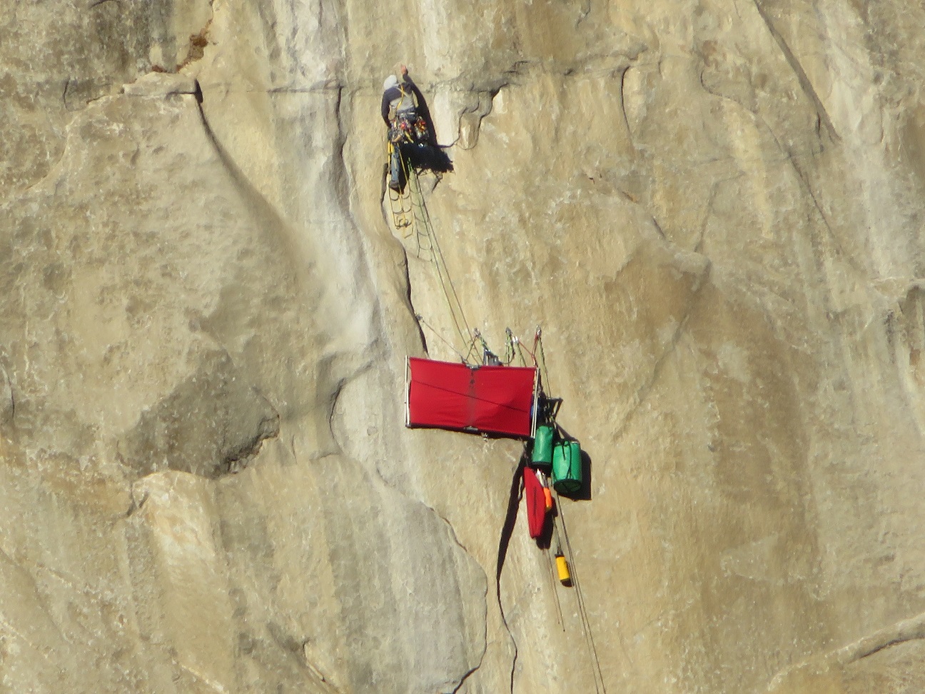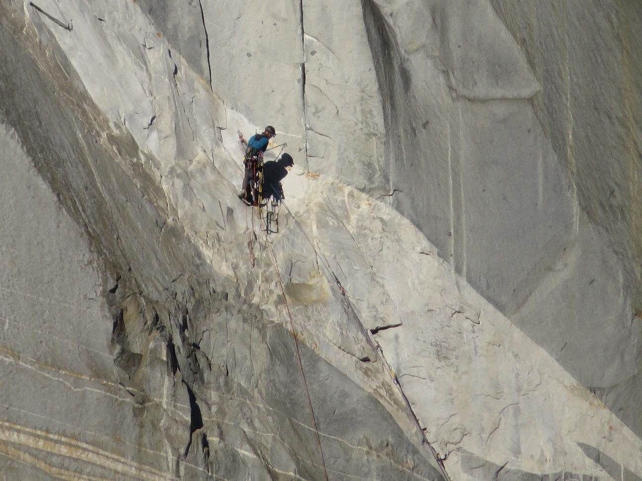 I have a camera with a 40x optical zoom, so we set the camera on something solid and zoomed way in on some people climbing El Capitan. They're actually planning on spending the night on the side of El Capitan. You'll see some of the gear they hauled up for that purpose. For me, the whole risk / reward equation would never compute. But obviously there are people who disagree: