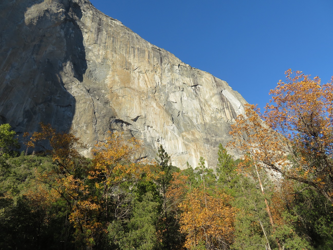 Next we arrived at El Capitan, a nearly sheer rock face that's popular with climbers (demented ones, that is). Can you imagine climbing up this?
