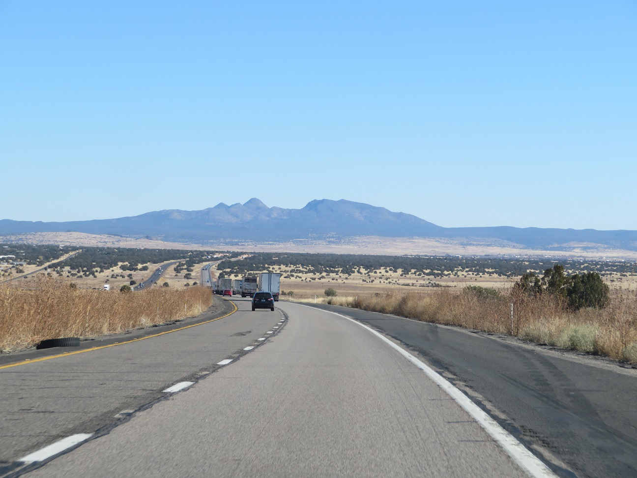 After leaving Kingman, AZ we headed to the Painted Desert. We kept going up in elevation from 3,500 feet to 7,000 feet. Here's how travelling through northern Arizona on I-40 looks: