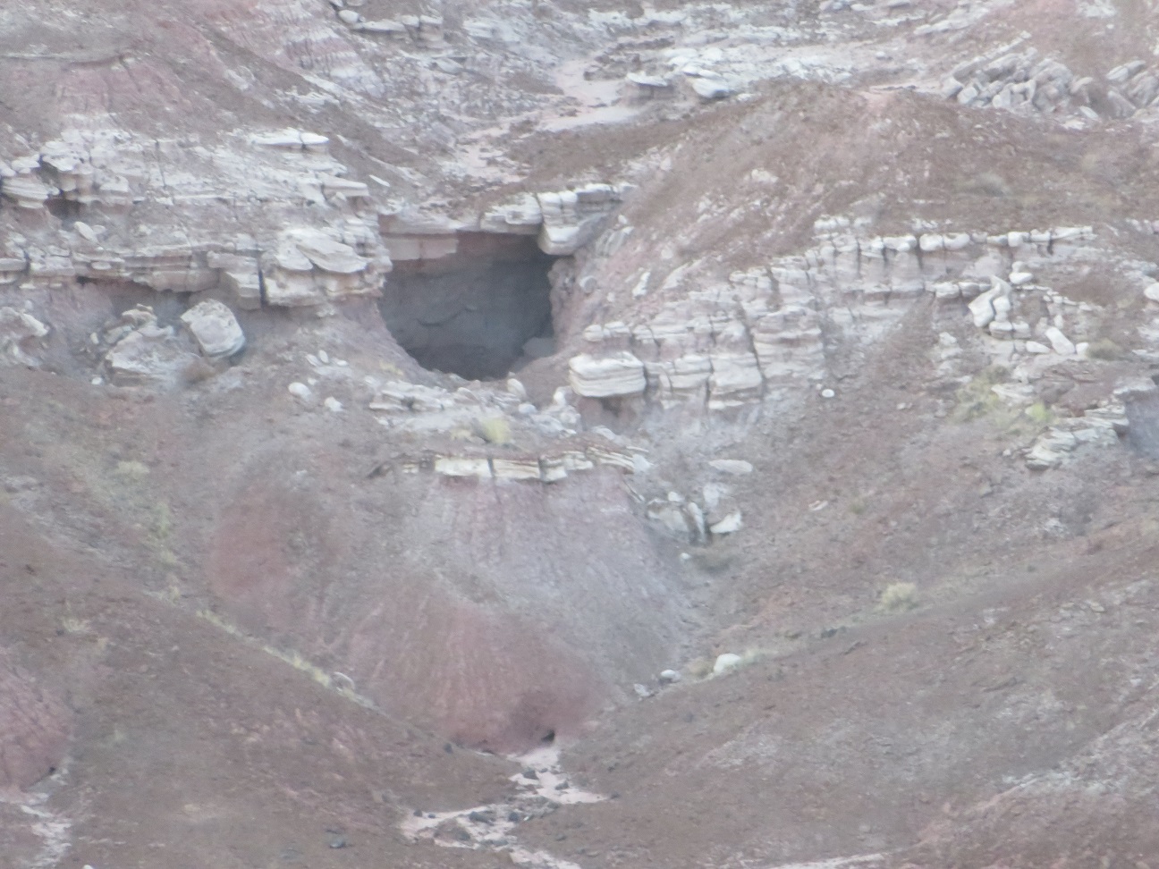 Andy noticed a cave in one of the rock formations. This first picture shows the cave entrance. The second picture was taken with the lens zoomed out so you could see the whole perspective: