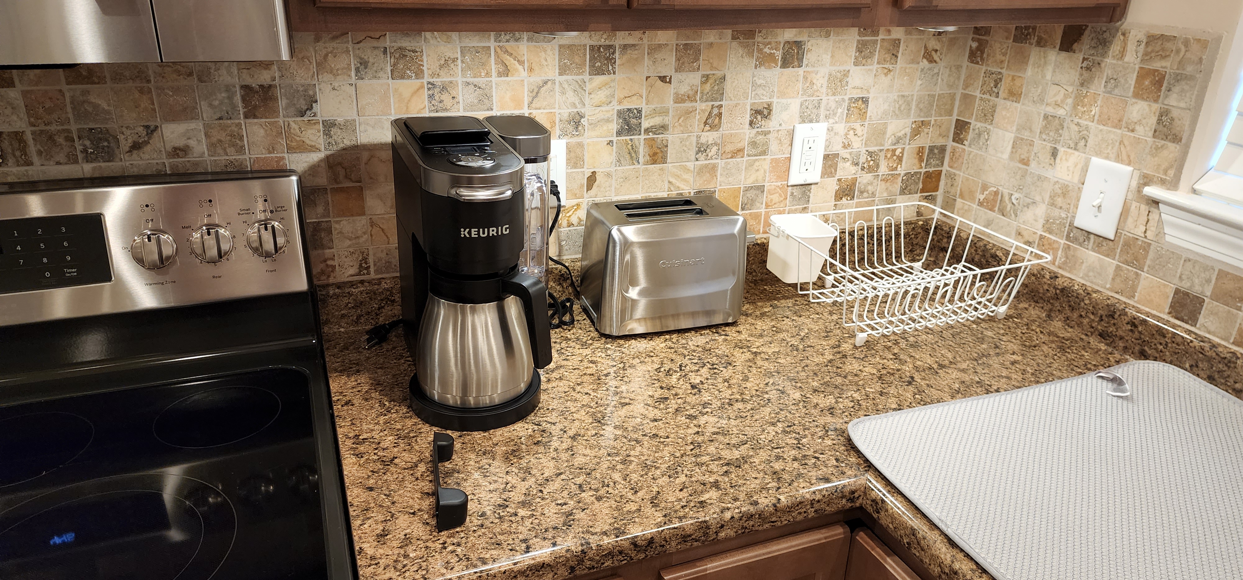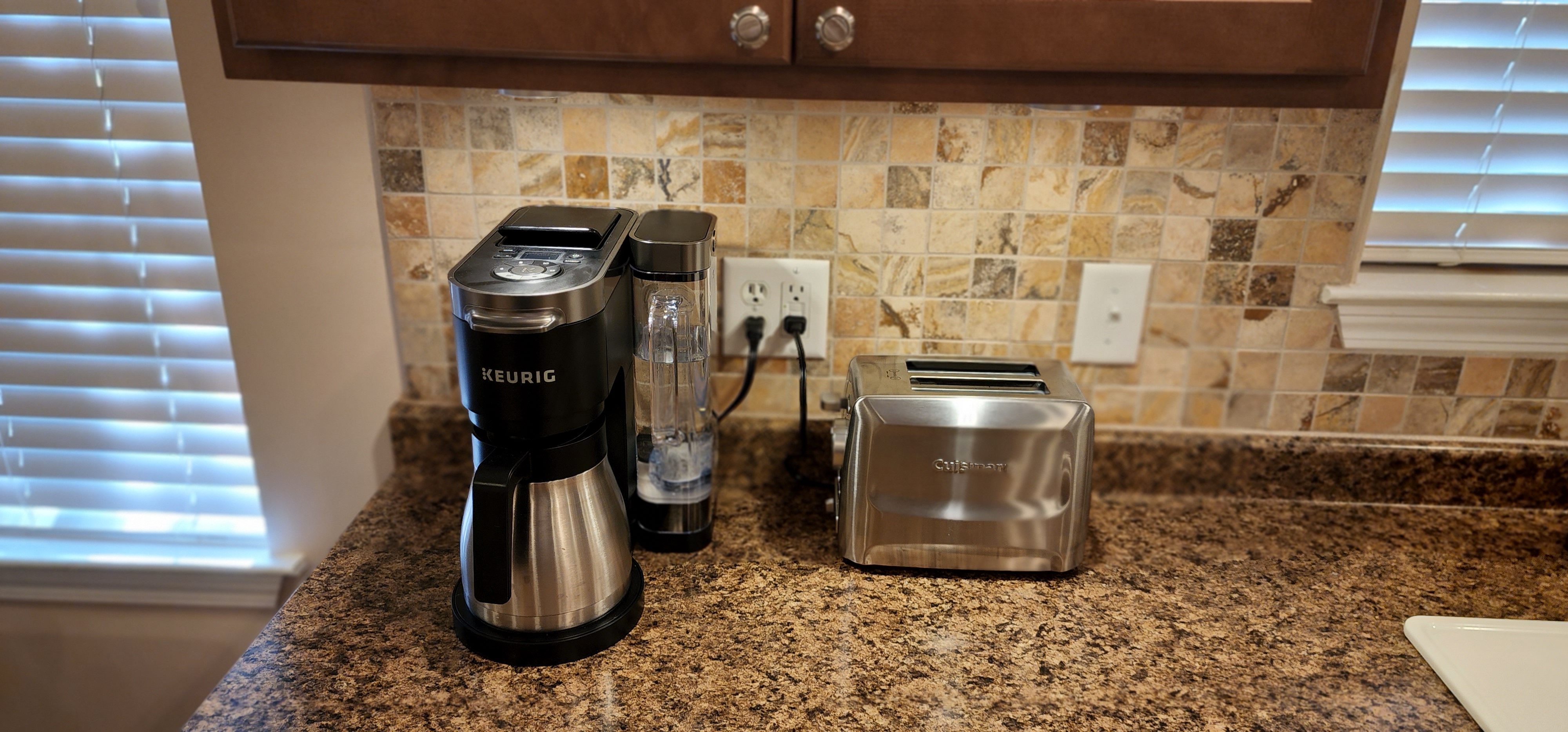 The coffee maker brews a great pot of coffee and also takes Keurig capsules for a single mug: