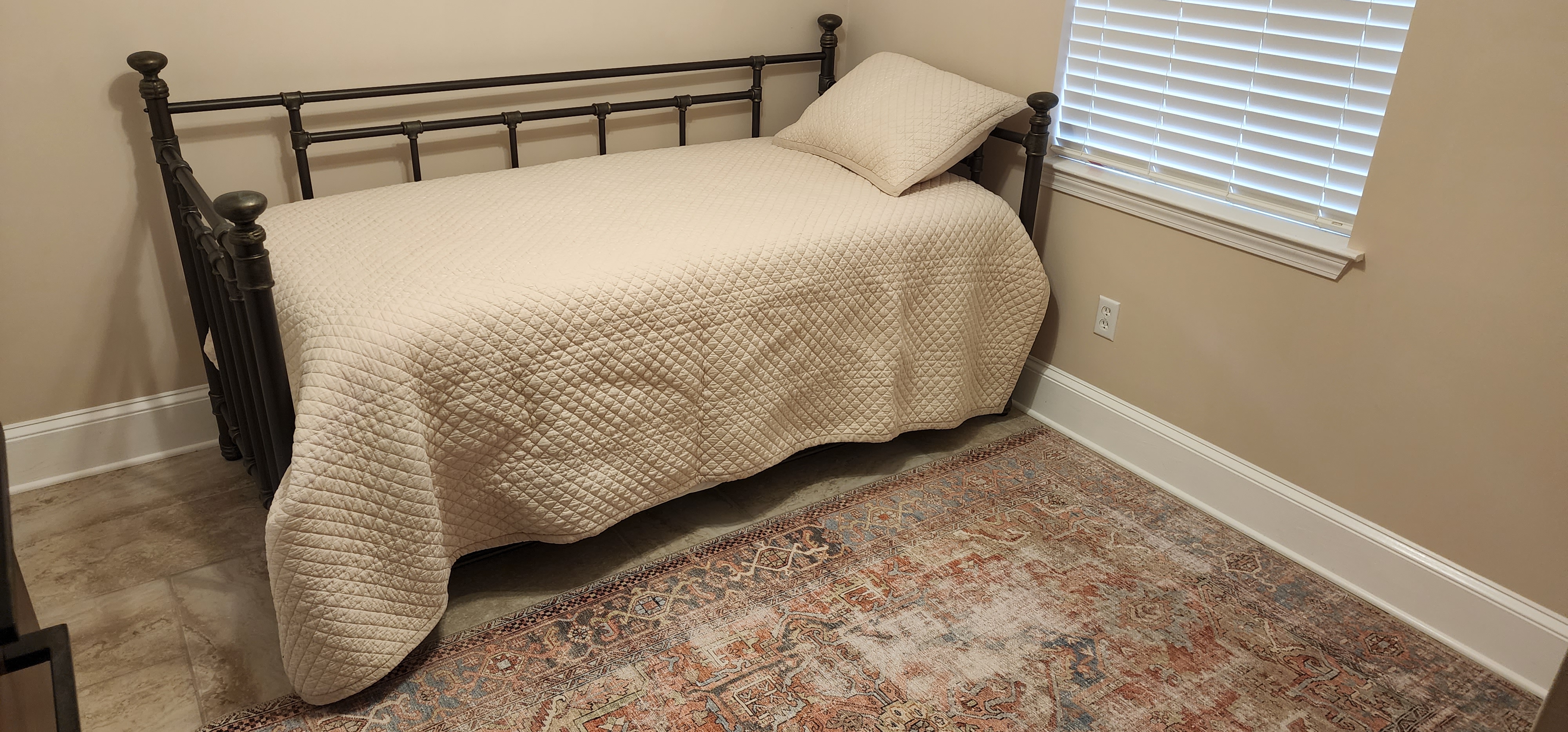 The daybed in the guest bedroom with a popup trundle undrneath: